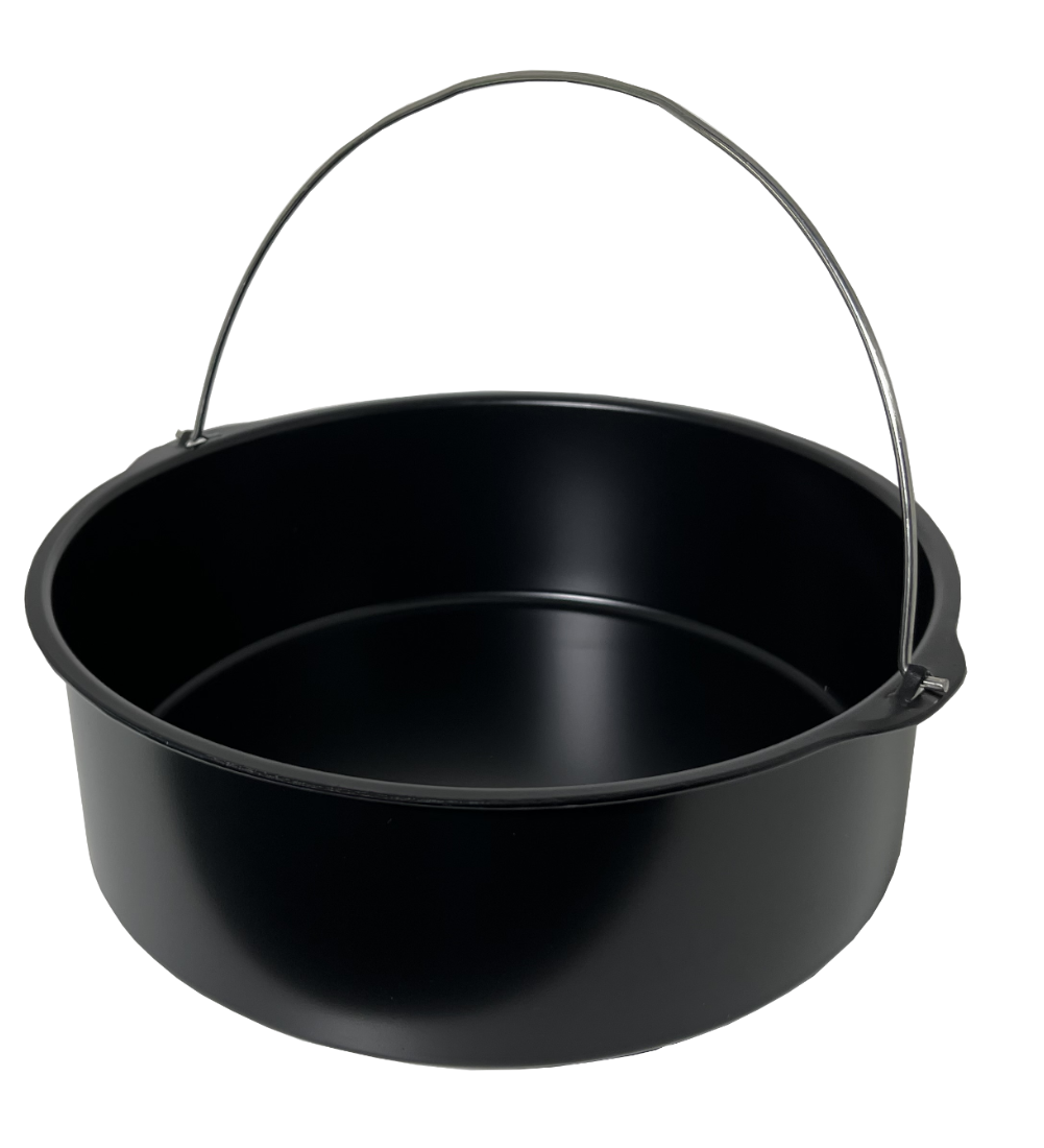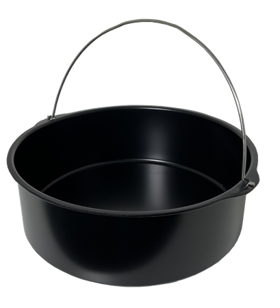 Garnek (foremka) w okrągłym kształcie, z uchwytem do frytkownic beztłuszczowych (air fry), piekarników.
