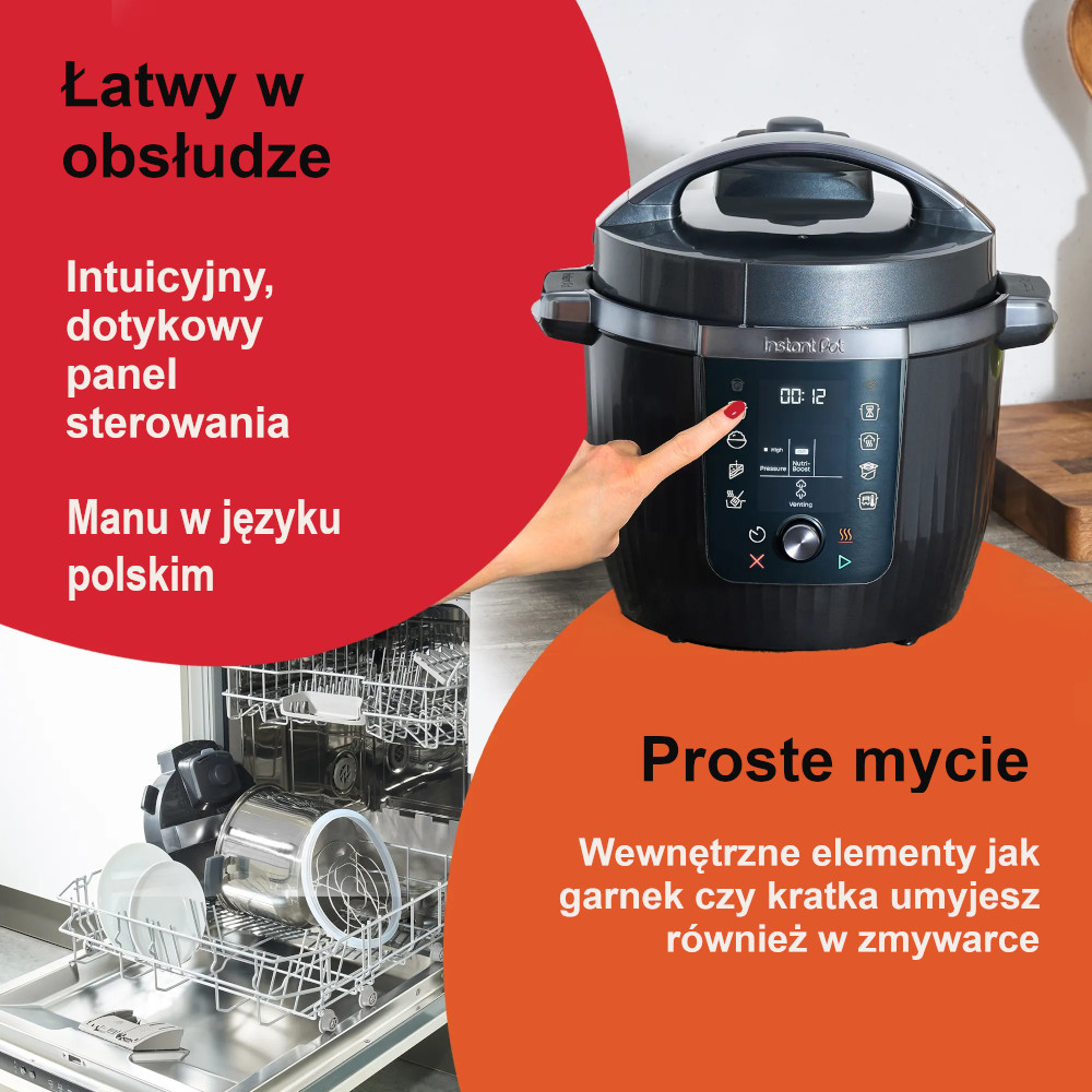 - NIE MULTICOOKER TWOJEJ NANY: Automatycznie zamykana pokrywa i garnek wewnętrzny, który można myć w zmywarce z chłodnymi w dotyku uchwytami, sprawiają, że jest to nasz najłatwiejszy w użyciu garnek błyskawiczny! Uwalnianie pary jest kontrolowane za pomocą prostego w użyciu interfejsu, co oznacza, że możesz go ustawić i zapomnieć.